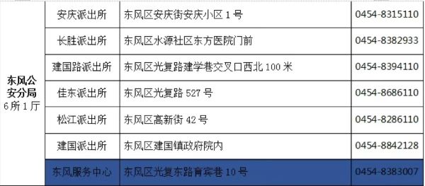 佳木斯东风区政务服务中心大厅户政窗口和各派出所户籍身份证窗口地址和电话