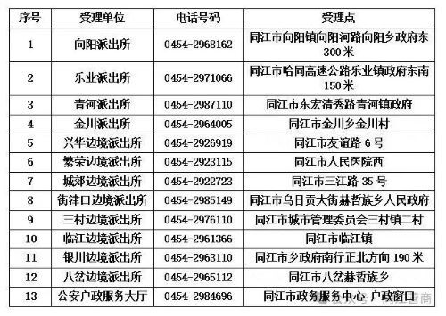 同江市户政服务大厅和派出所户籍窗口身份证办理业务电话号码如下: