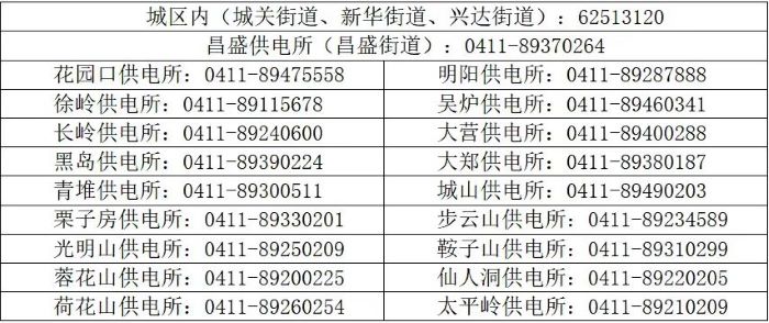 三,庄河市供电公司供电服务电话:各供电所24小时电力网格服务电话